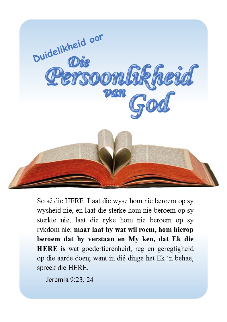 Wat sê die Bybel omtrent God? Hierdie boek neem ons stap vir stap deur die Bybel om die waarheid omtrent God te verduidelik.